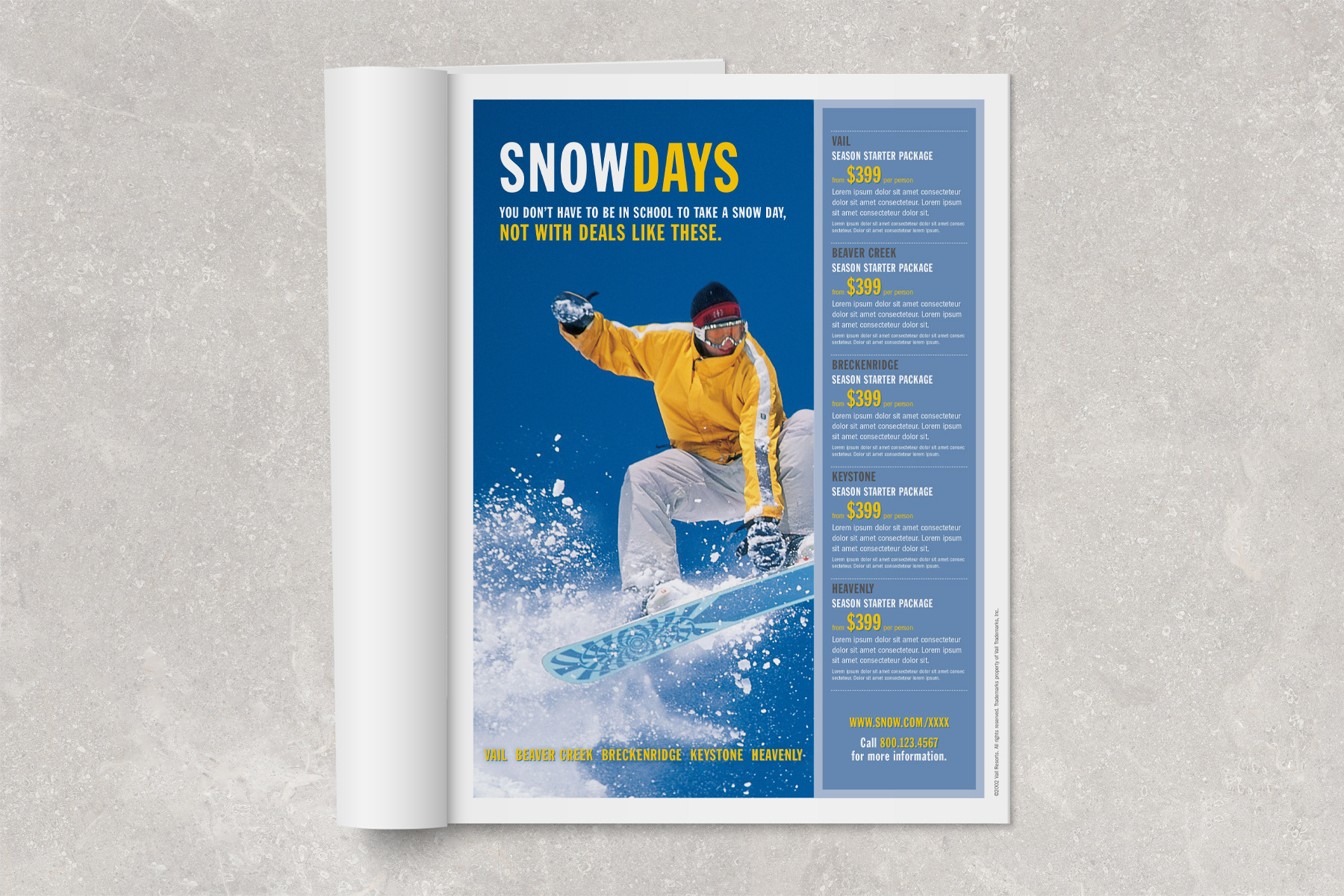 Vail Resorts, Inc. owns and operates destination resorts around the world and connects them through season passes and lodging offers. I collaborated with the brand creative team to develop the snow.com campaign.